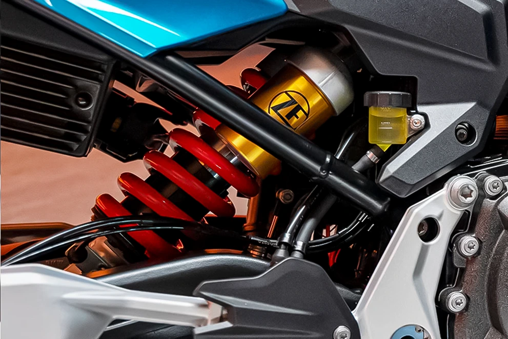 A suspensão dianteira invertida agora é ajustável, permitindo que você escolha o acerto ideal pro seu estilo de pilotagem.